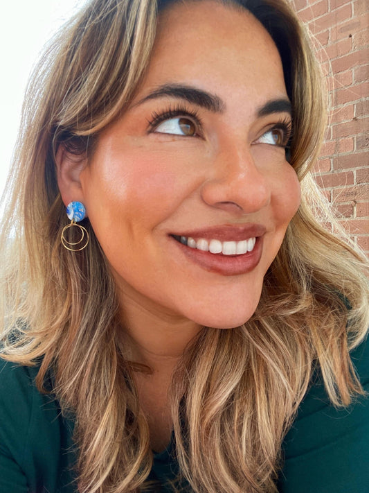 Blue & Gold statement stud earrings // round hoop earrings with gold foil // lightweight earrings // MARIE