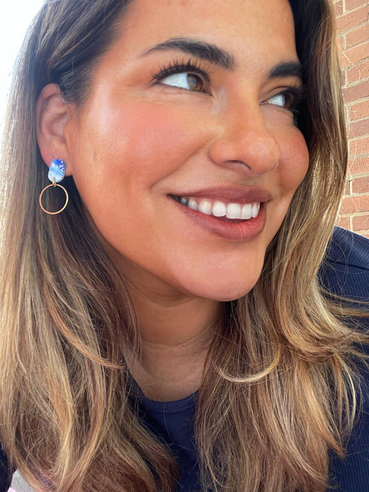Blue & White Marbled Oval Drop Earrings // CHRISTINA