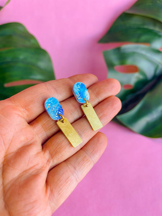 Blue and white earrings with Gold ball studs // lightweight statement earrings // BAMBI