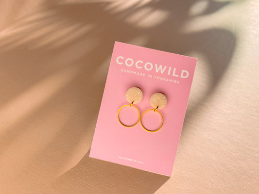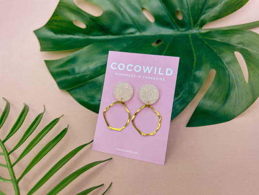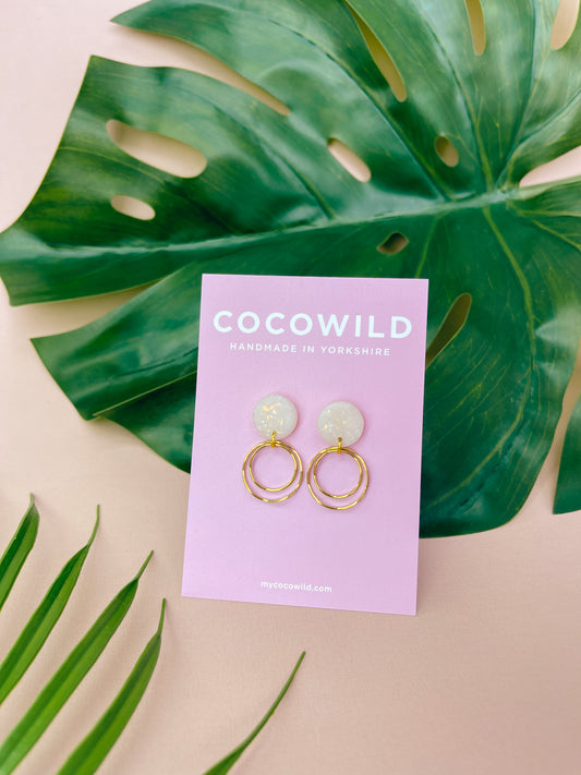 MARIA - Pearlescent & Gold Leaf Double Hoop Earrings
