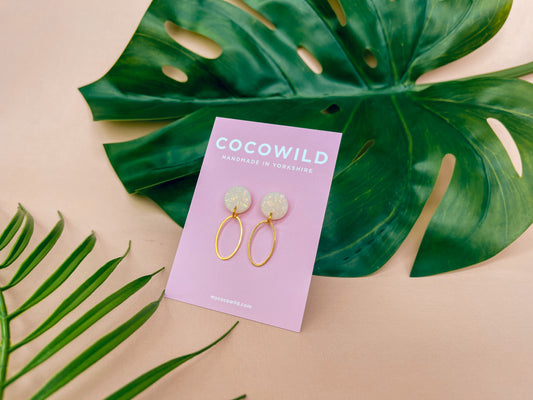 CHRISTINA - Pearlescent & Gold Leaf Oval Drop Earrings