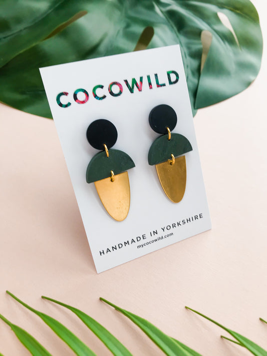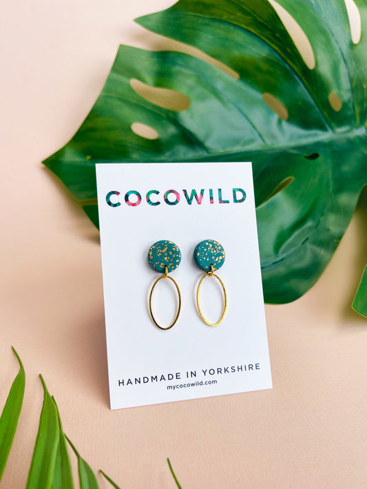 CHRISTINA - Emerald Green & Gold Leaf Oval Drop Earrings