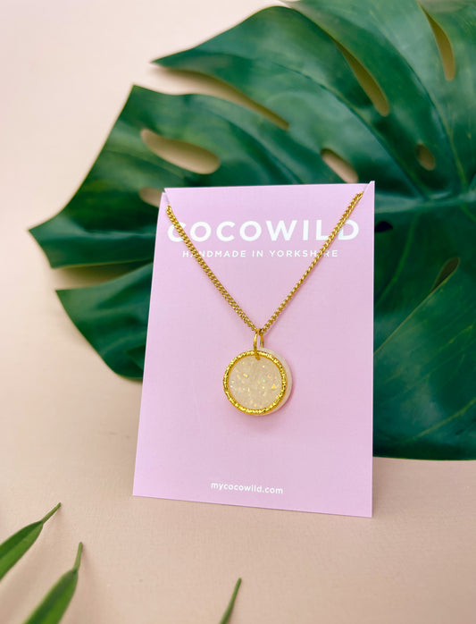 LUCIA - Pearlescent & Gold Small Circle Pendant Necklace on Short 18k Gold Chain