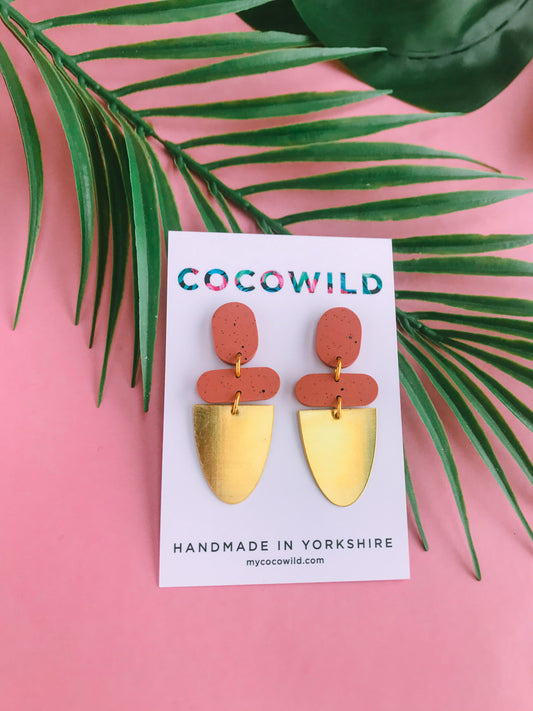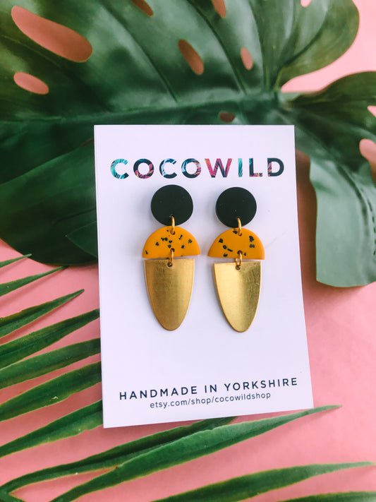 FRANCESCA - Black & Speckled Orange Leaf Drop Earrings