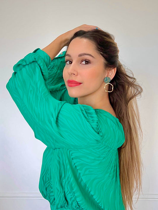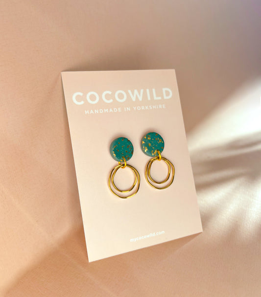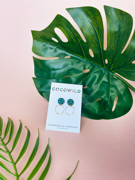 MARIA - Emerald Green & Gold Leaf Double Hoop Earrings