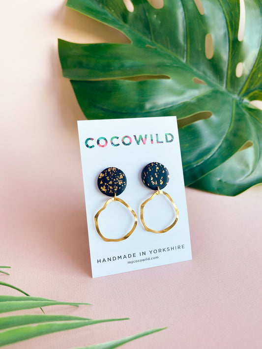OLIVIA - Black & Gold leaf Hoop Drop Earrings