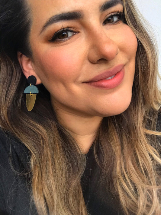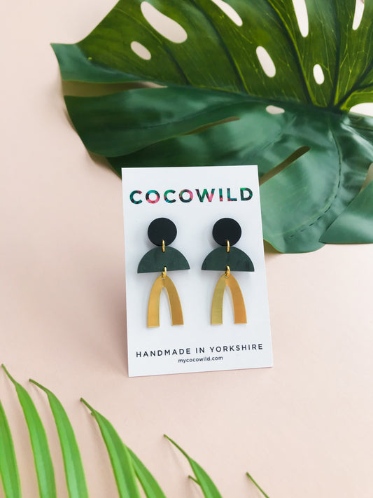 LEXI Black & Green marbled earrings // emerald green Gold polymer clay dangle earrings.