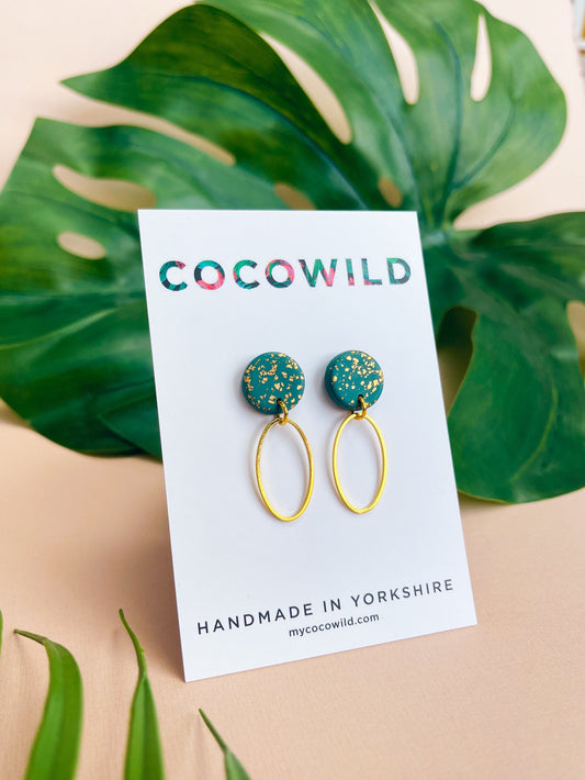 OLIVIA Emerald green and gold earrings with gold hoops handmade in the UK