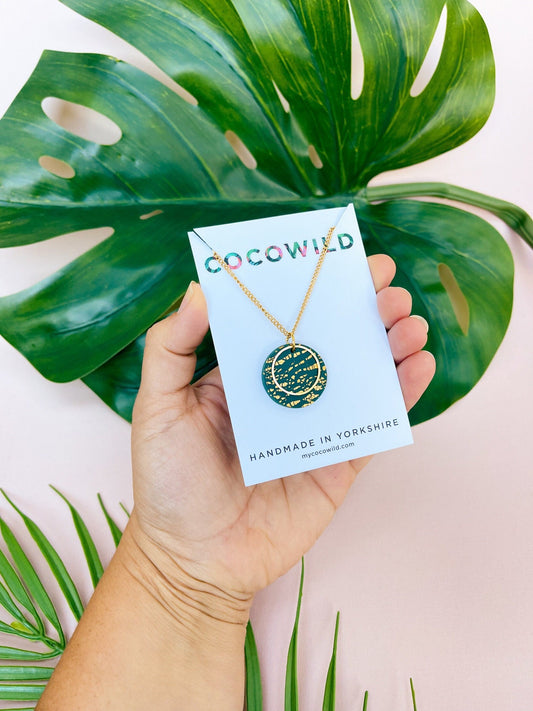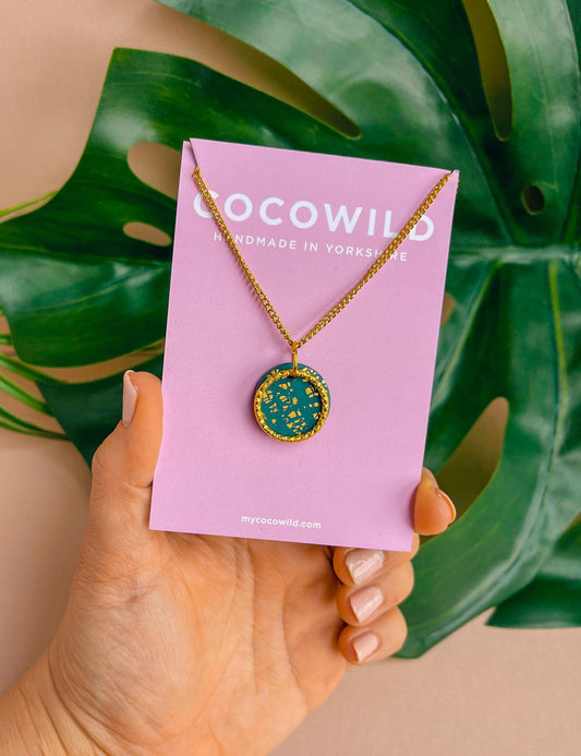 Large emerald green & gold clay long necklace | Statement jewellery // ISABELLA