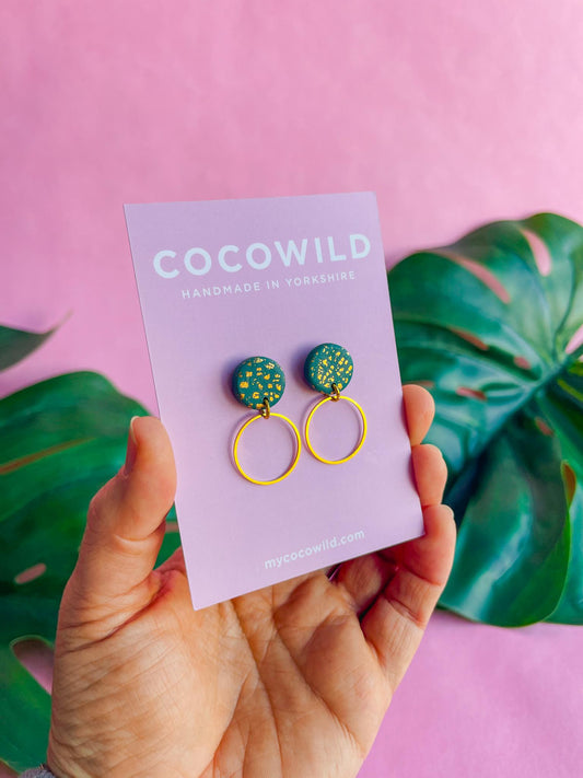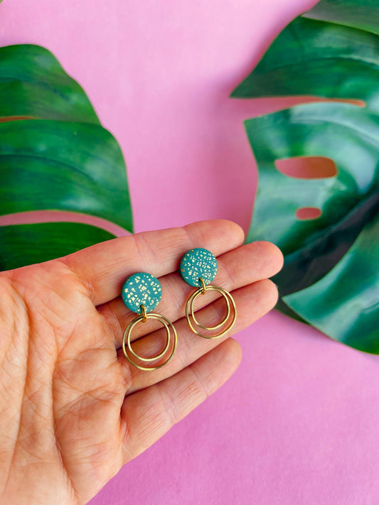Green & Gold hoop Earrings / Minimalist Earrings / gold foil // BROOKE