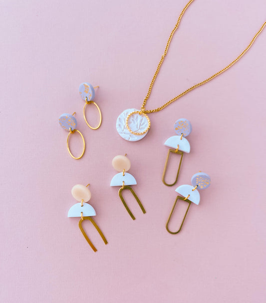 LUCIA - Pearlescent & Gold Small Circle Pendant Necklace on Short 18k Gold Chain
