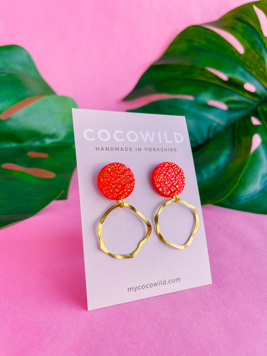 OLIVIA Red and gold earrings with gold hoops handmade in the UK