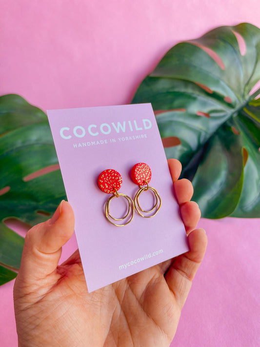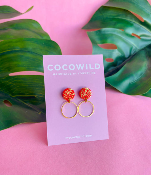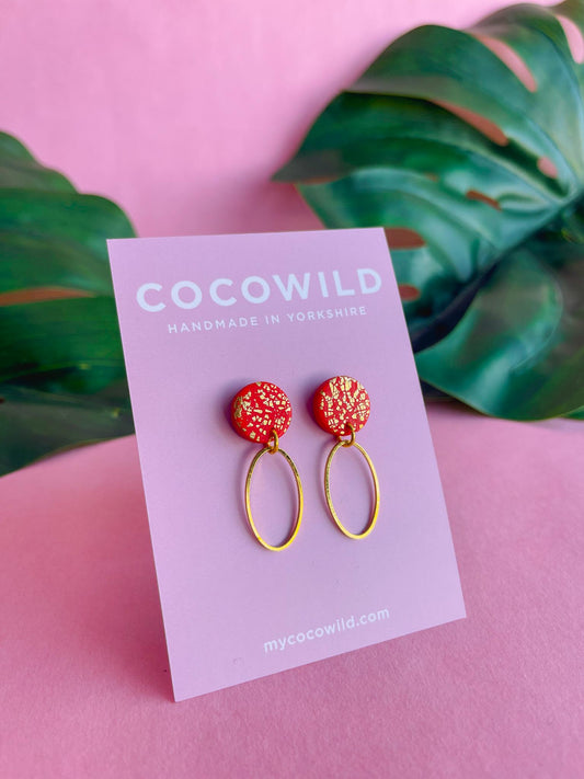 Red & Gold statement earrings - CHRISTINA // Handmade clay earrings with gold foil // lightweight earrings //